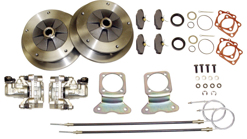 Rear Disc Brake Kit With Zero Wheel Off-Set And Emergency Brakes. Great For Street, Off-road And Play Cars Where Emergency Brake Provisions Are Required. Original Equipment Style Brake Calipers Make Poor Break Performance A Thing Of The Past. Converting Your Vw Swing Axle Vehicle From Drum To Disc Brakes Is Made Simple With This Conversion Kit. This Kit Was Designed To Be Used With 15″ Wheels Without Losing Your Fender/Tire Clearance.