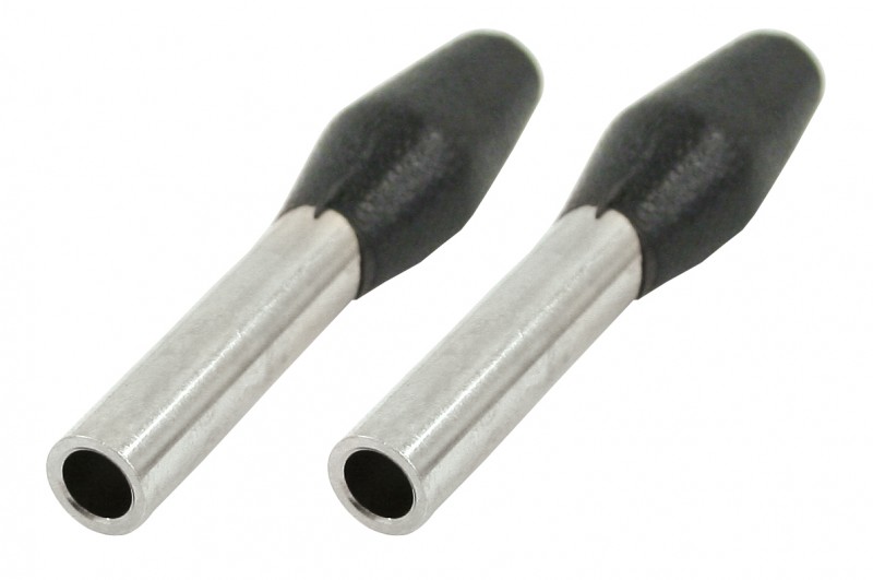 Door lock pulls have a chrome bottom and a black tip.