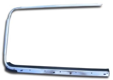 Outside Scraper clips into the outside portion of the door and scrapes against the outside edge of the roll up door glass. The aluminum molding extends round the most of the door opening and tucks in behind the vent wing seal at the top and bottom edges. The chrome clips to the body of the car and the attached rubber portion is in contact with the door window. The right outside scraper fits 1954 through 1964 Beetles.