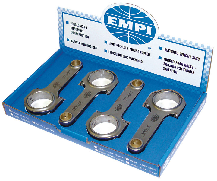 Empi Race Proven H-Beam Design Combines Weight And High Strength Due To The Forged 4340 Chromoly Construction. Radiused Rod Caps Help Reduce The Amount Of Clearancing Required On Stroker Applications And Are Sleeved To The Rod To Eliminate Cap Shifting.