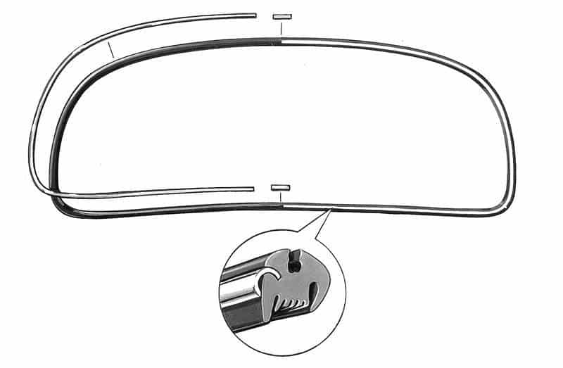 REAR WINDOW MOLDING, METAL TRIM WITH CLIPS, BUG SEDAN 1953-57