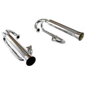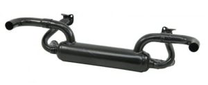Black Standard Single Quiet Muffler With Chrome Tip For Air-cooled Vw Squareback, Fastback & Notchback. The Small 3 Bolt Flange Is At The 11:00 o’clock Position. This Muffler Is For Centered Collector Headers.