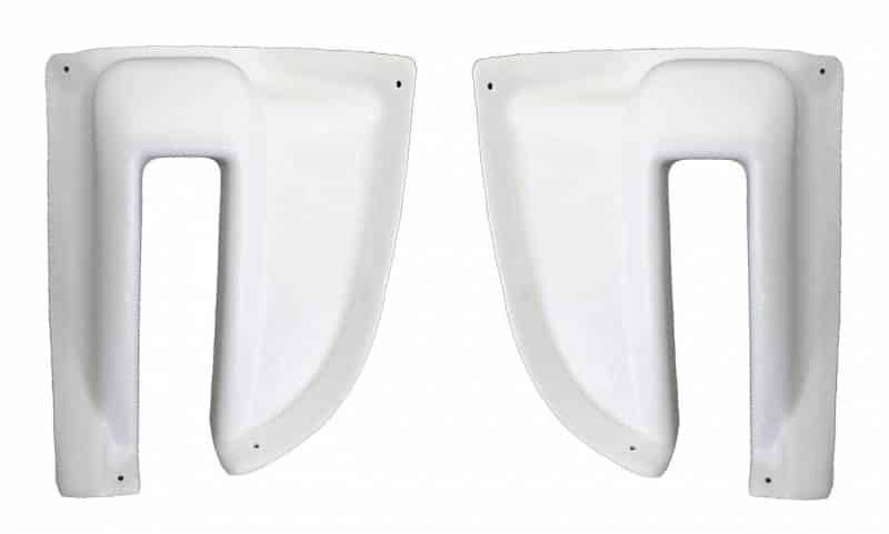 HINGE COVERS, WHITE PLASTIC LEFT & RIGHT, REAR CARGO HATCH, BUS 1968-79 *MADE IN USA BY WCM*